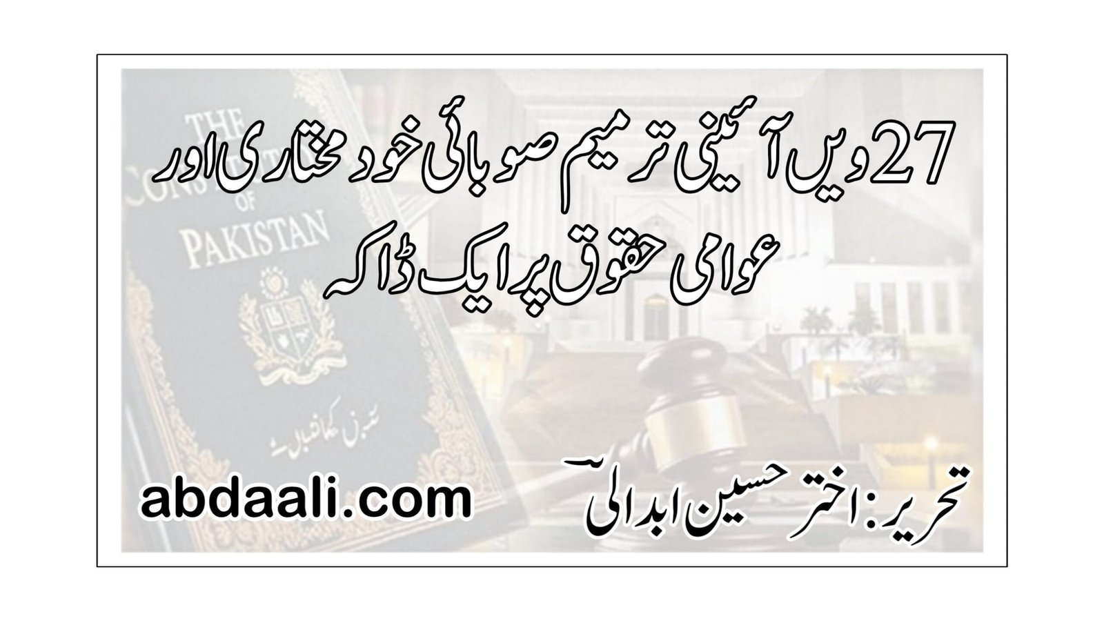 مملکتِ خداداد کے مقتدرہ حلقوں کی جانب سے پیش کی جانے والی 27 ویں آئینی ترمیم درحقیقت صوبوں کے اختیارات پر حملہ، عدلیہ پر مزید کنٹرول اور سیاسی امور میں بہ راہِ راست مداخلت کا ذریعہ بننے کی کوشش ہے۔ یہ اقدام اُن اصولوں کی نفی ہے جن کے لیے پاکستان کی عوام نے ماضی میں جنرل ایوب، جنرل ضیاء الحق اور جنرل مشرف جیسے آمروں کے خلاف بے مثال مزاحمت دکھائی۔ اُن عظیم جمہوری کام یابیوں کو پسِ پشت ڈال کر دوبارہ ‘ون یونٹ’ طرزِ حکم رانی کی ناکام پالیسی کی طرف دھکیلنا چھوٹے قومیتوں میں بے چینی، انتشار اور نفرت کو ہوا دے گا۔