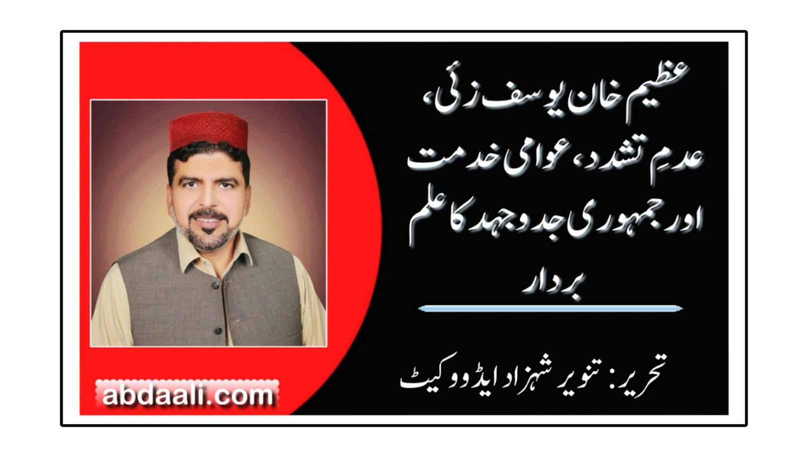 عوامی نیشنل پارٹی سے تعلق رکھنے والے ضلع صوابی کے معروف شخصیت عظیم خان یوسف زئی نظریاتی جدوجہد، عوامی خدمت اور شخصی و جمہوری آزادیوں کے لیے استقامت کی زندہ علامت ہیں۔ اپنی ثابت قدمی، بے لوث خدمت اور اصولی سیاست کے باعث انہوں نے عوام کے دلوں میں ایک باوقار اور مستحکم مقام حاصل کیا ہے۔ وہ اُن چند لوگوں میں سے ہیں جن کے قول و فعل میں تضاد نہیں بلکہ ہم آہنگی نظر آتی ہے۔